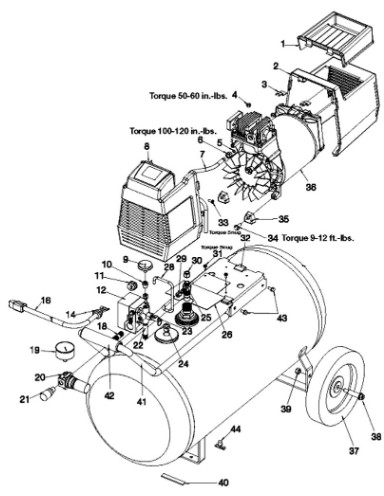 Westward 3JR71 Portable Oil-Free Direct-Drive Electric Air Compressor Parts -