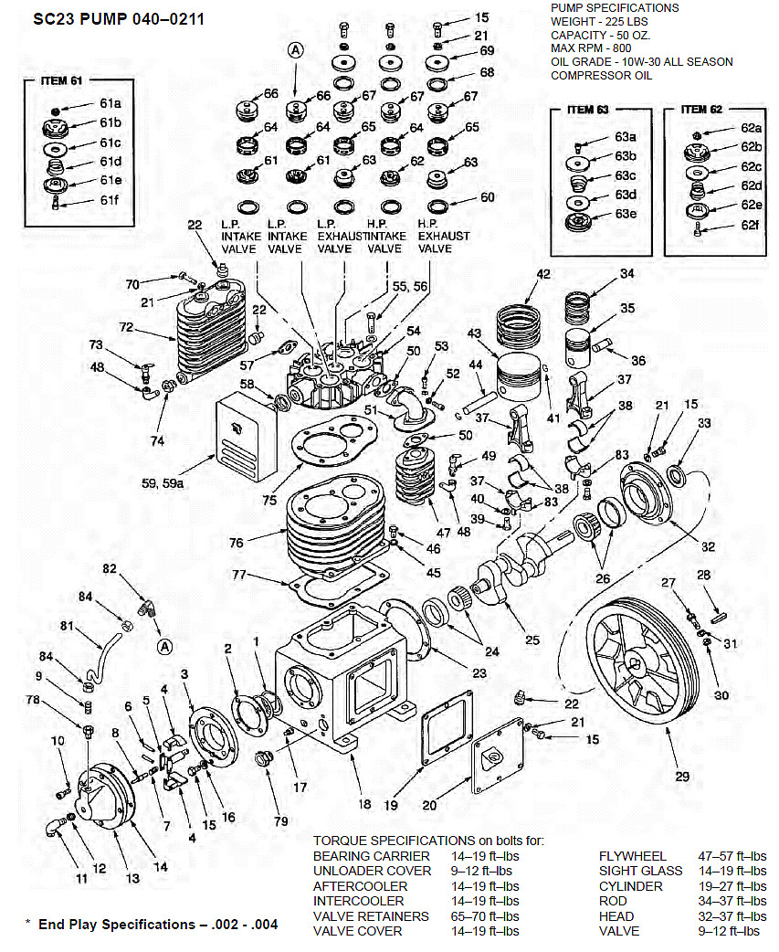 Kellog 452 pump, 452TV pump, 452TVX pump Two-Stage Oil-Bath Recprocating Air Compressor Pump Parts -