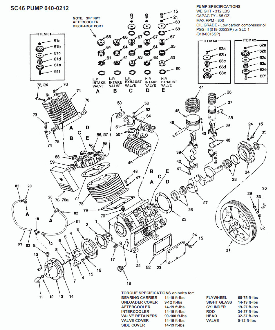 Coleman Powermate Sanborn 040-0212, 707, C2, SC46 Air Compressor Pump Parts -