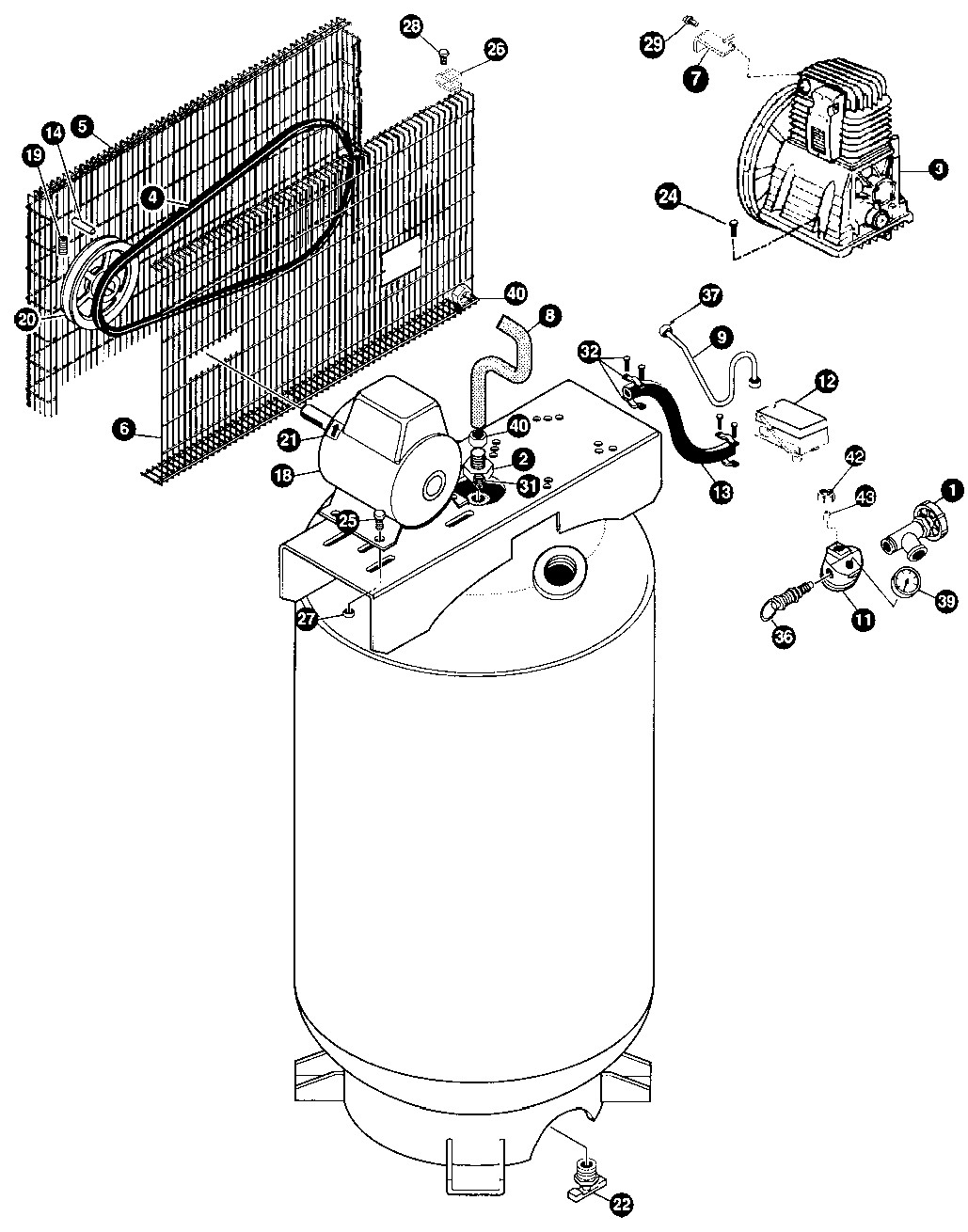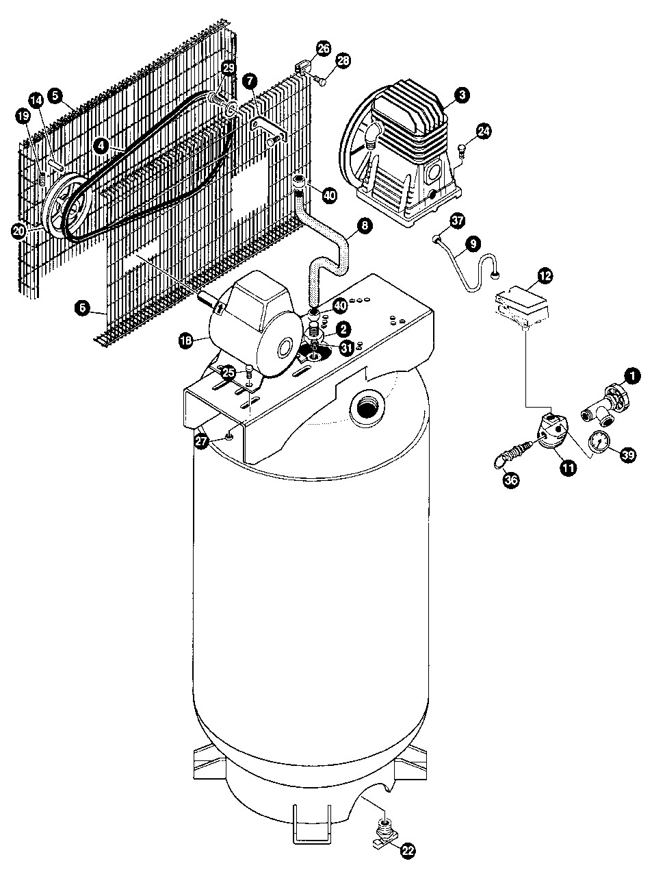 Coleman Powermate Sanborn M06Z080V2A154, M06Z080V2E154, B06Z080V2E154 Stationary Two-Stage Electric Air Compressor Parts