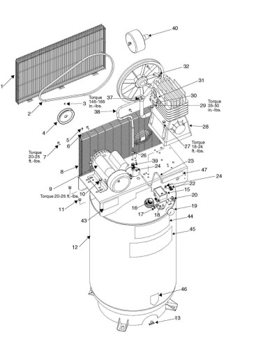 B5900 Two-Stage Air Compressor Pump Replacement. Includes flywheel, aftercooler, and air filter assembly.