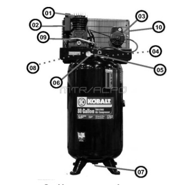 Kobalt K7580V2, 134749 Stationary Two-Stage Oil-Bath Electric Air Compressor Parts -