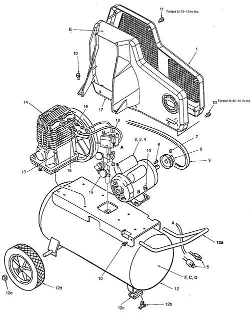 Coleman Powermate Sanborn 165B500,104C200, 20E20PC, 30E25PC, 30EM20PC, 109C300, 109C400 Portable Single-Stage Oil-Bath electric Air Compressor Parts -