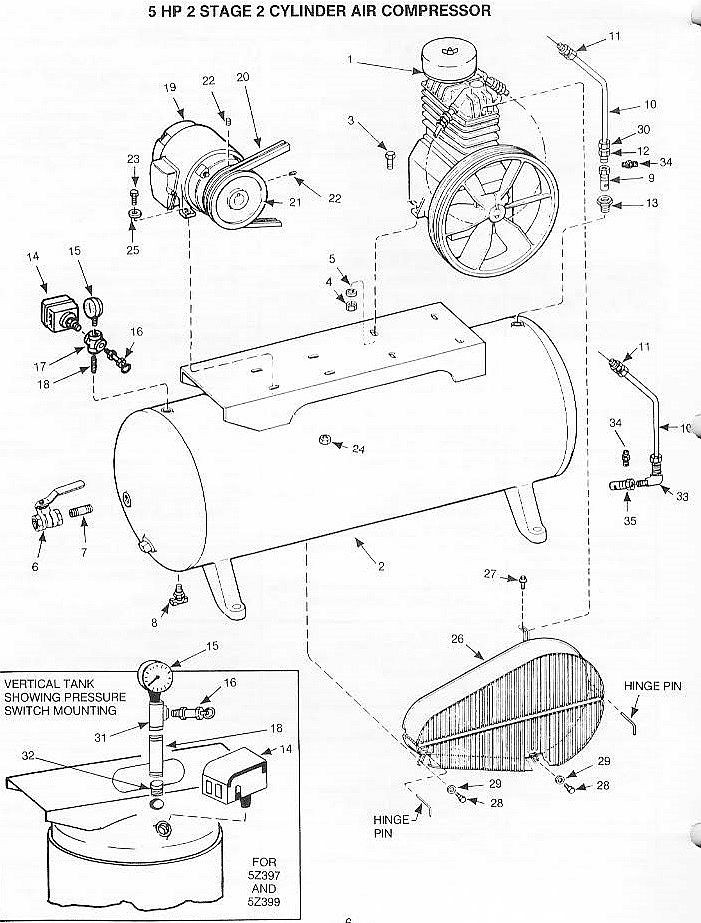 Campbell Hausfeld EX123000 Stationary Two-Stage Oil-Bath Gas Air Compressor Parts -