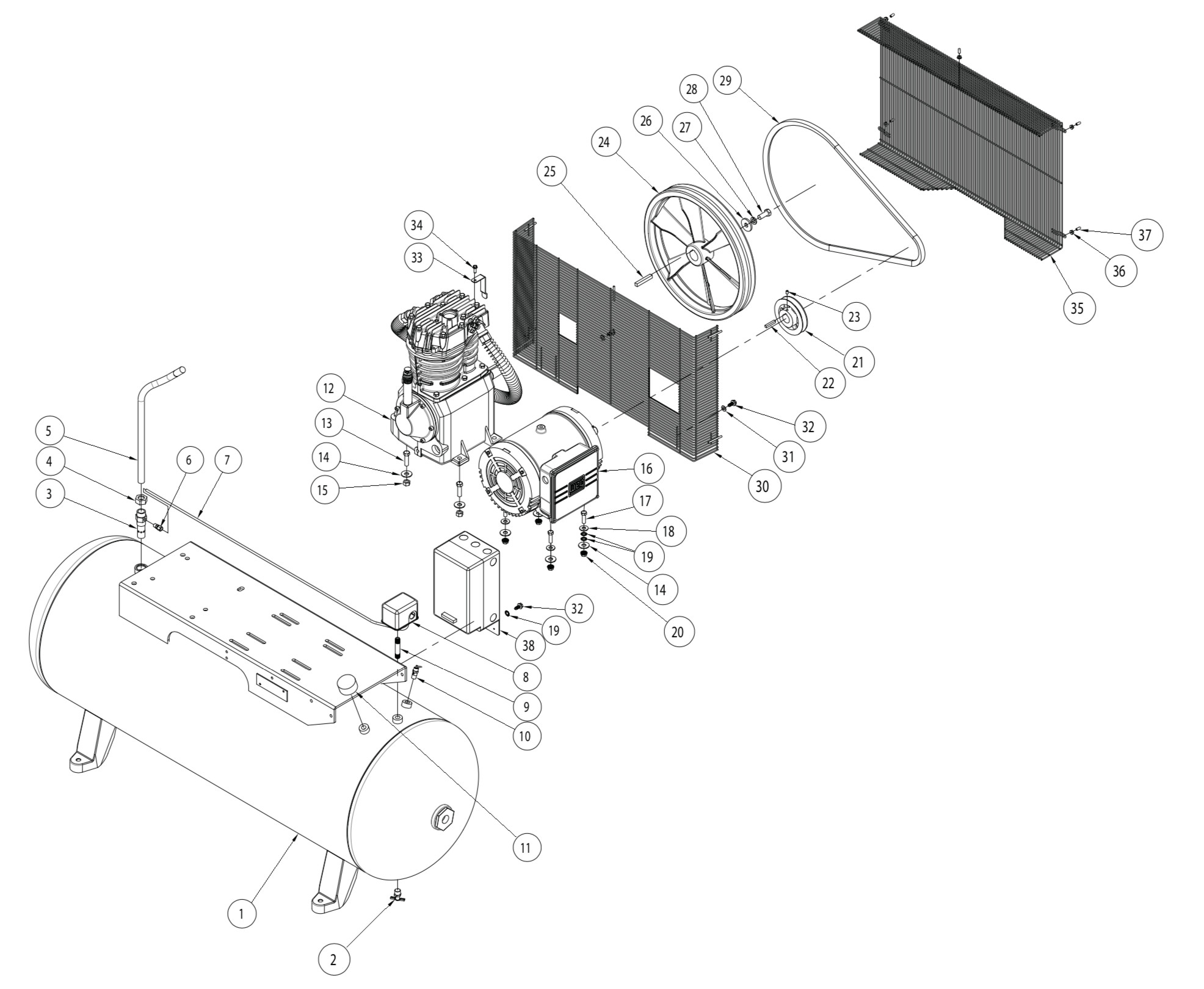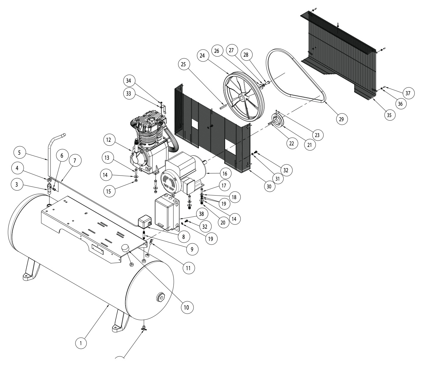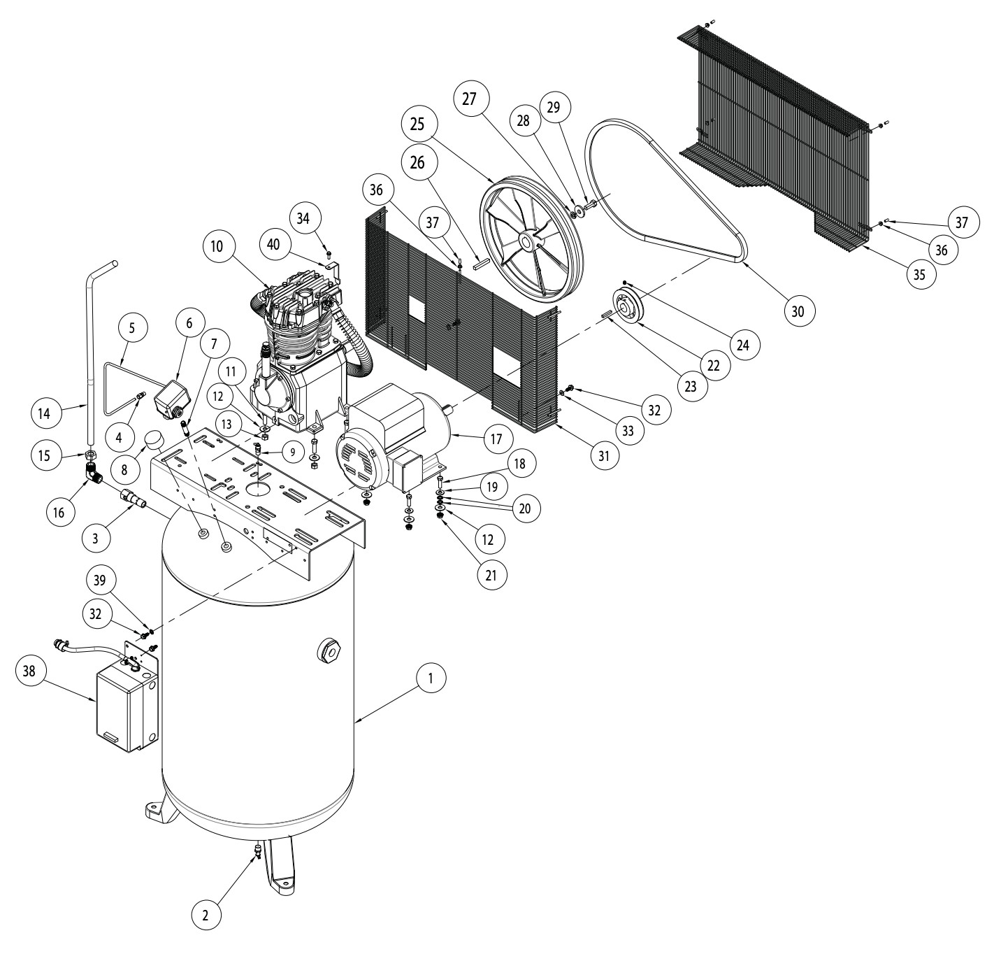 Campbell Hausfeld CI073080V Stationary Two-Stage Air Compressor Repair Parts -