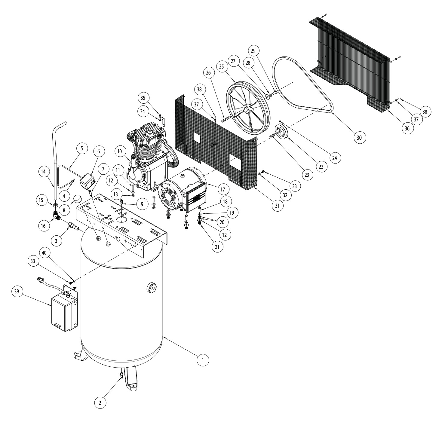 Speedaire 35WC40 Two-Stage Oil-Bath Electric Stationary Air Compressor Parts -