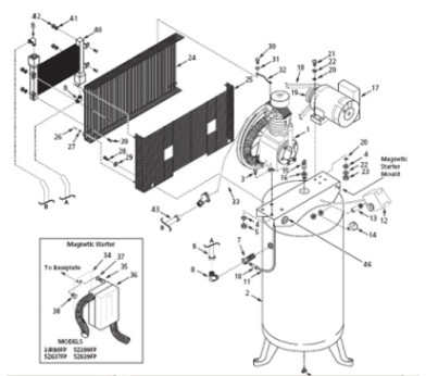 Campbell Hausfeld TF214700 Stationary Two-Stage Oil-Bath Gas Air Compressor Parts -