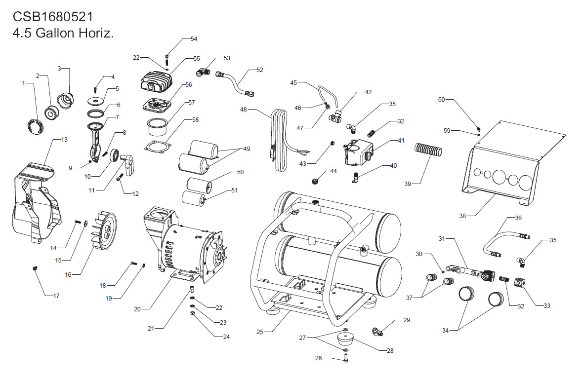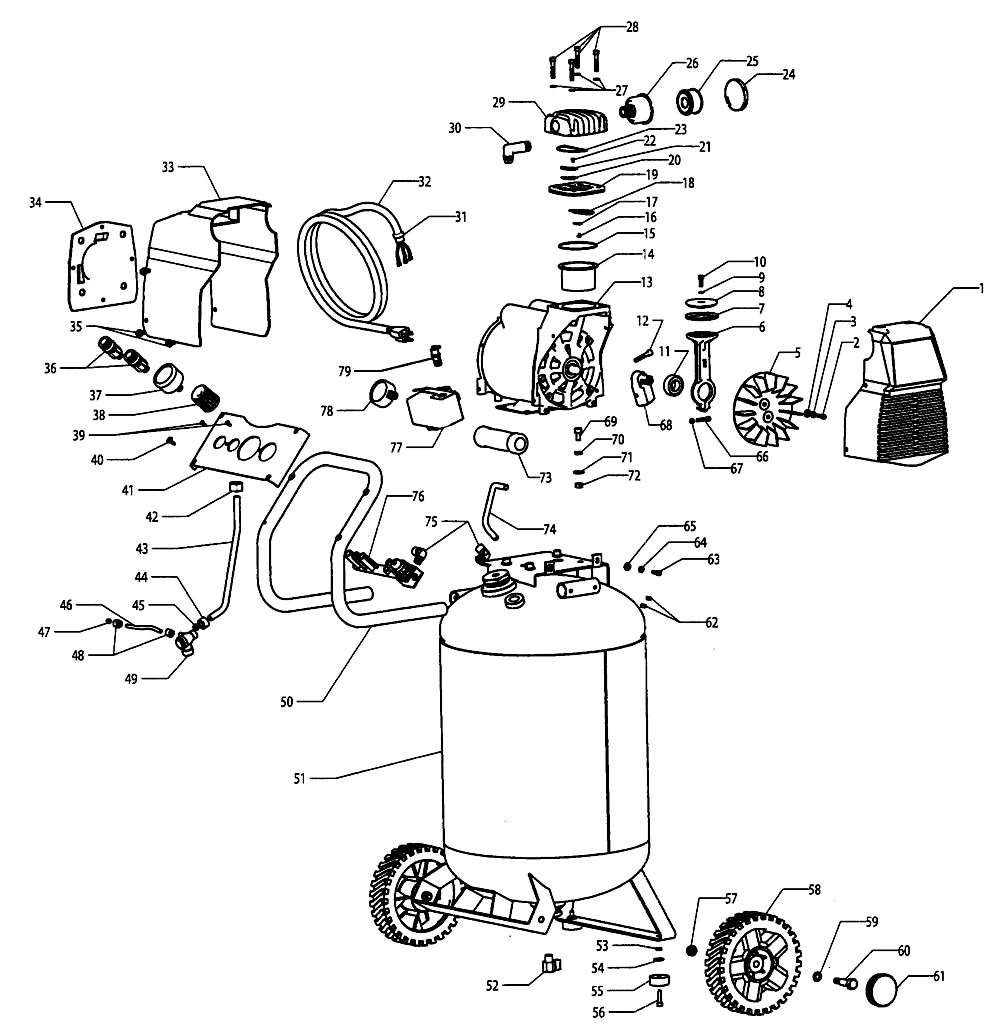 Husky F3S33VWD, 516051 Oil-Free Portable Air Compressor Parts -