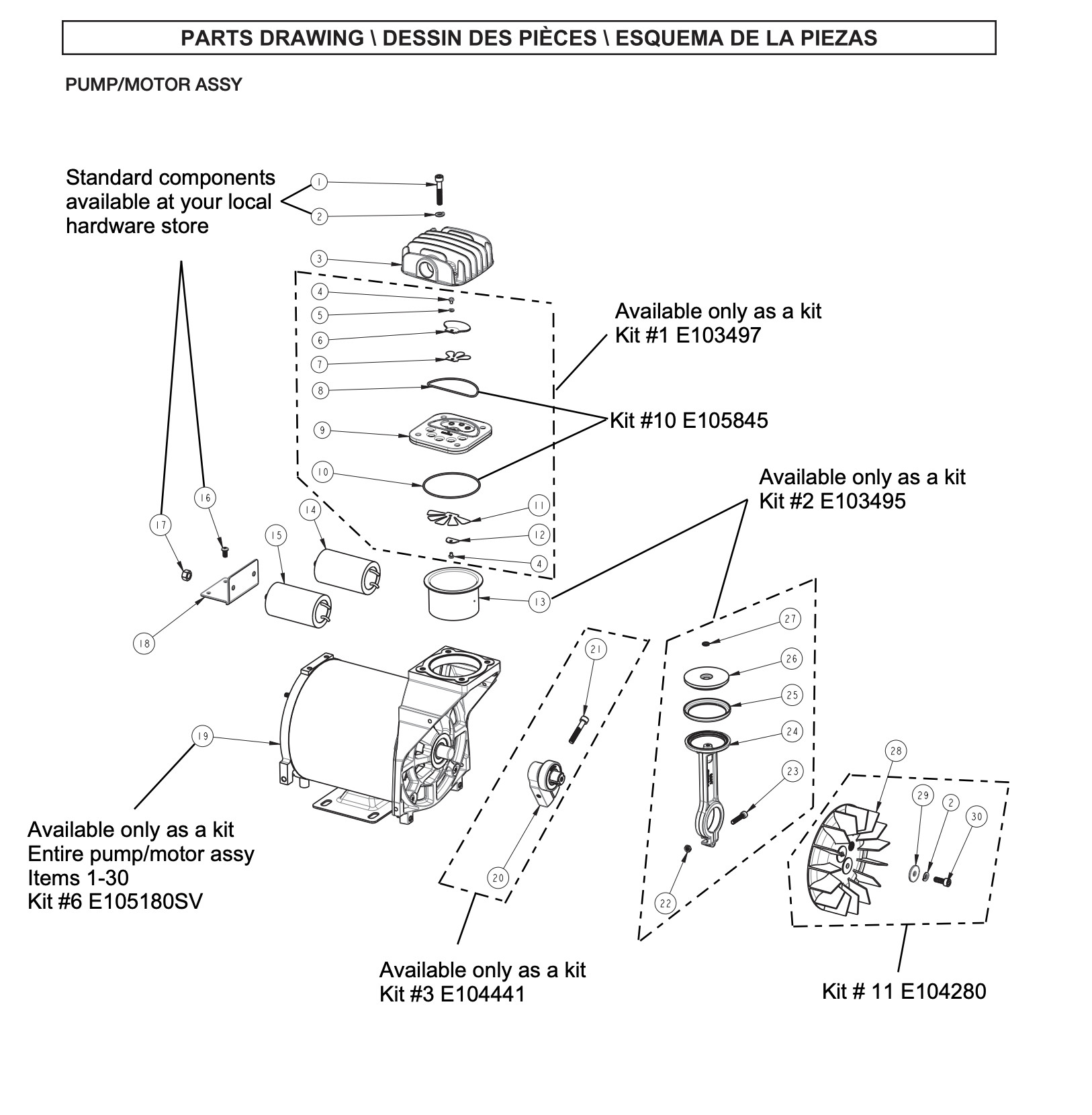 Coleman Powermate Sanborn F2B2, E105180 Air Compressor Pump Parts -
