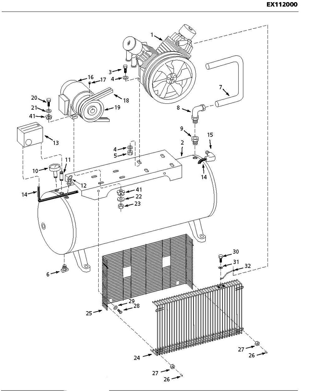 Maxus EX112000, EX1120 Stationary Two-Stage Oil-Lubricated Electric Air Compressor Parts -