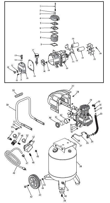 Husky 395-226 Portable Oil-Bath Direct-Drive Electric Air Compressors Parts -