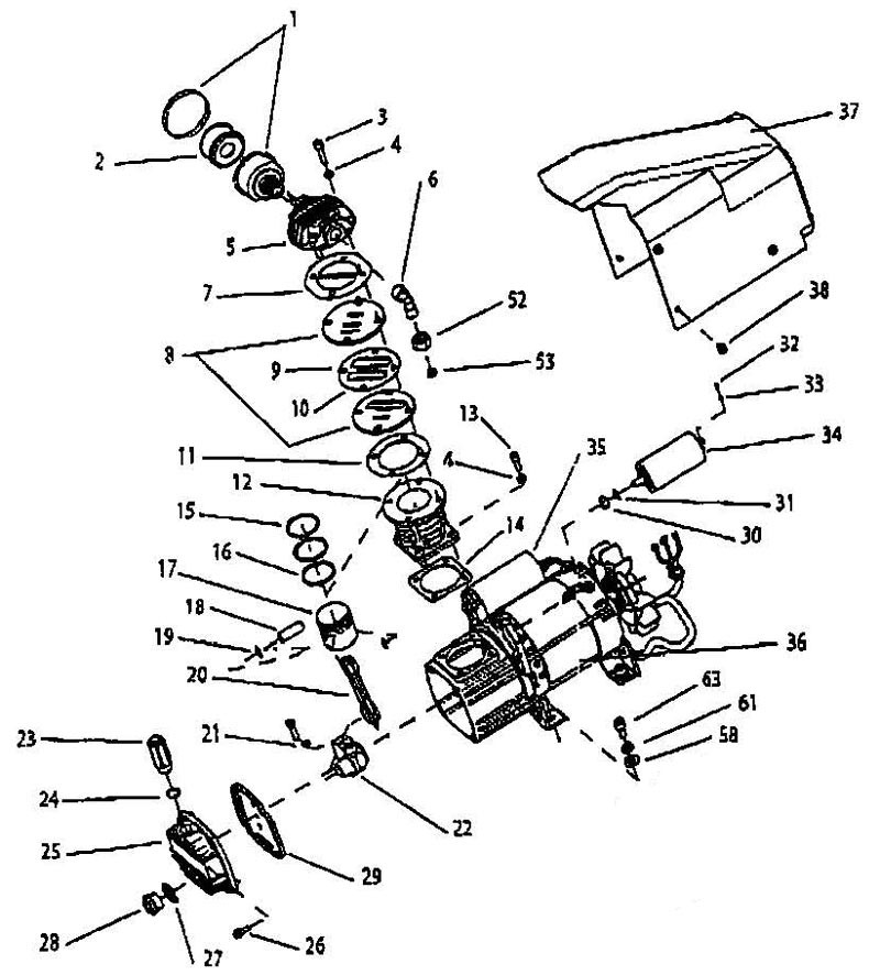 Coleman Powermate Sanborn VKP1080418, VKF1080418 Portable Oil-Free Electric Air Compressor Parts -