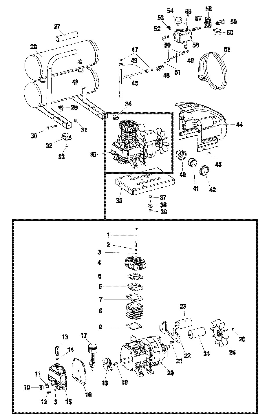Industrial Air C042I Portable Oil-Free Electric Air Compressor Parts -