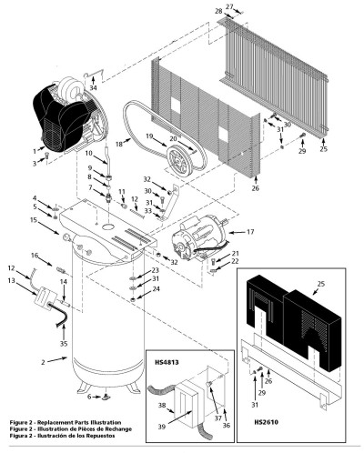 Husky HS4810, HS4813, HS4814 Stationary Two-Stage Electric Air Compressor Parts -