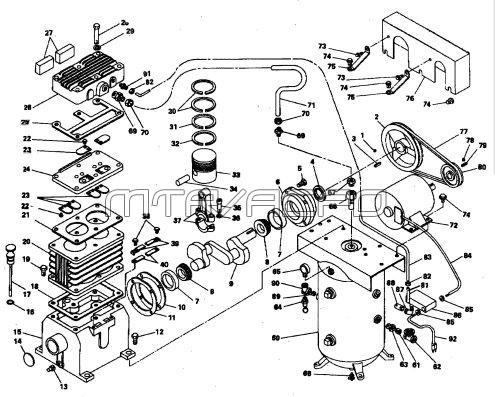 Coleman Powermate Sanborn 500A30V, 500A30H, 500A60V, 500A60, 500A60H Stationary Single-Stage Oil-Bath Electric Air Compressor Parts -