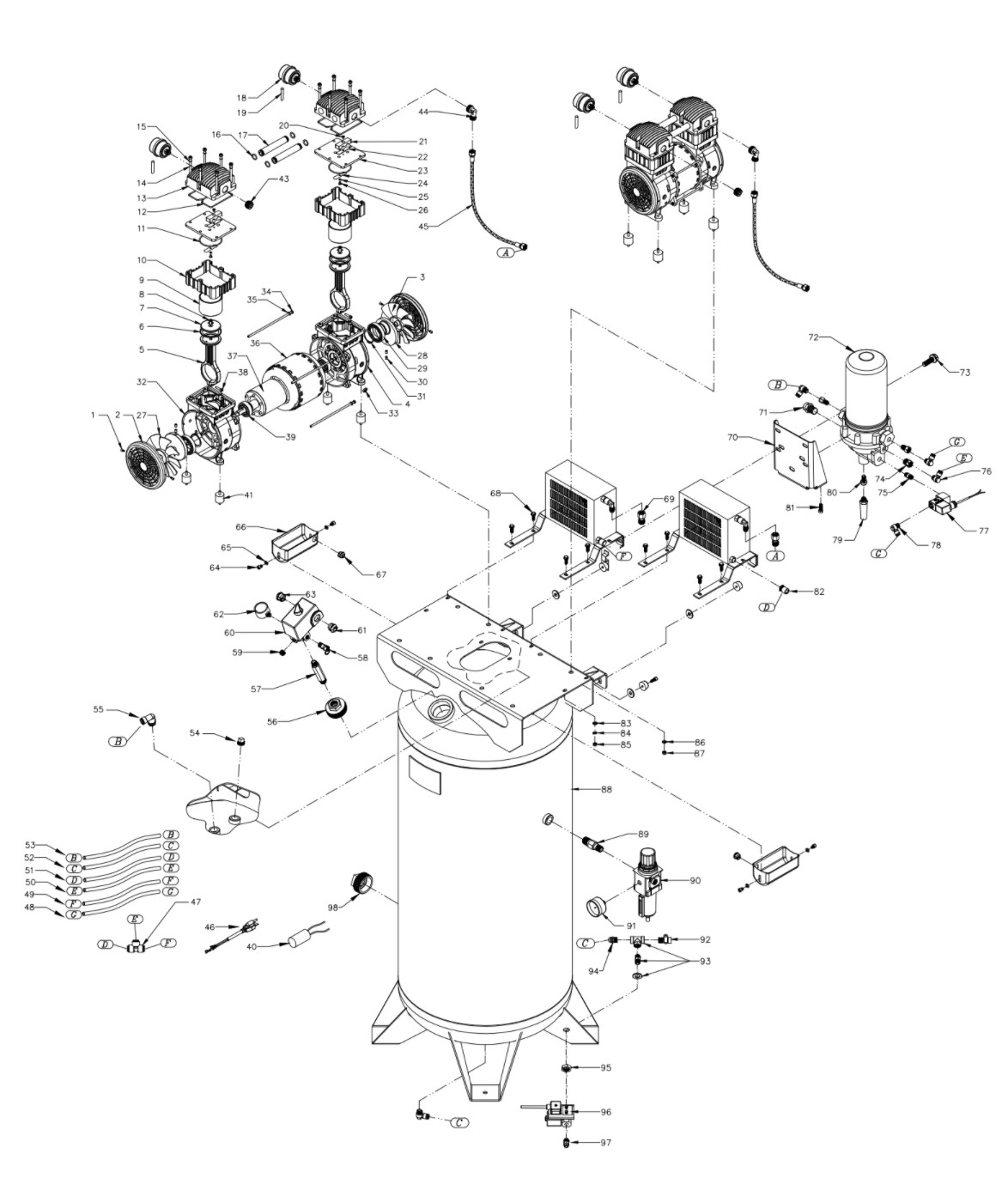 California Air Tools 20040DC Oil-Free Stationary Direct-Drive Electric Air Compressor Repair Parts -