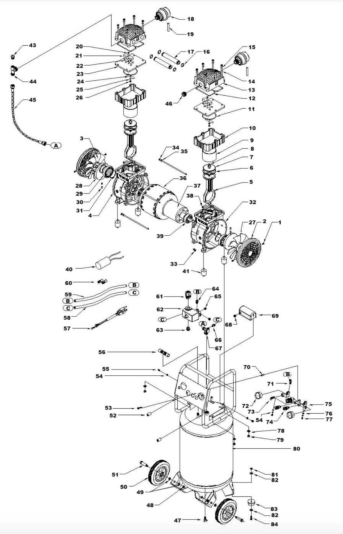 20040C Portable Ultra Quiet Oil-Free Air Compressor Repair Parts -